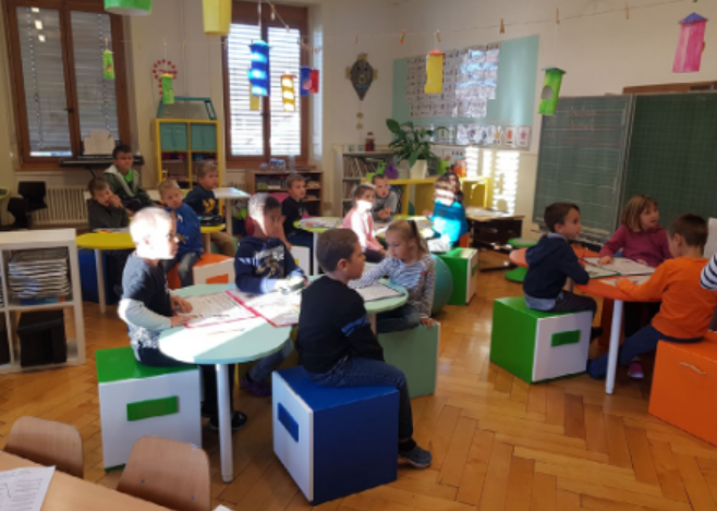 Nous avons repensé cette organisation en 6 étapes en nous appuyant sur plusieurs courants théoriques liés aux aspects de la psychologie, de la pédagogie, de l’architecture des classes, de l’interaction maîtres élèves avec une doctorante de l’université de Neuchâtel. De même, nous l’avons mise en image avec l’apport d’une photographe professionnelle.